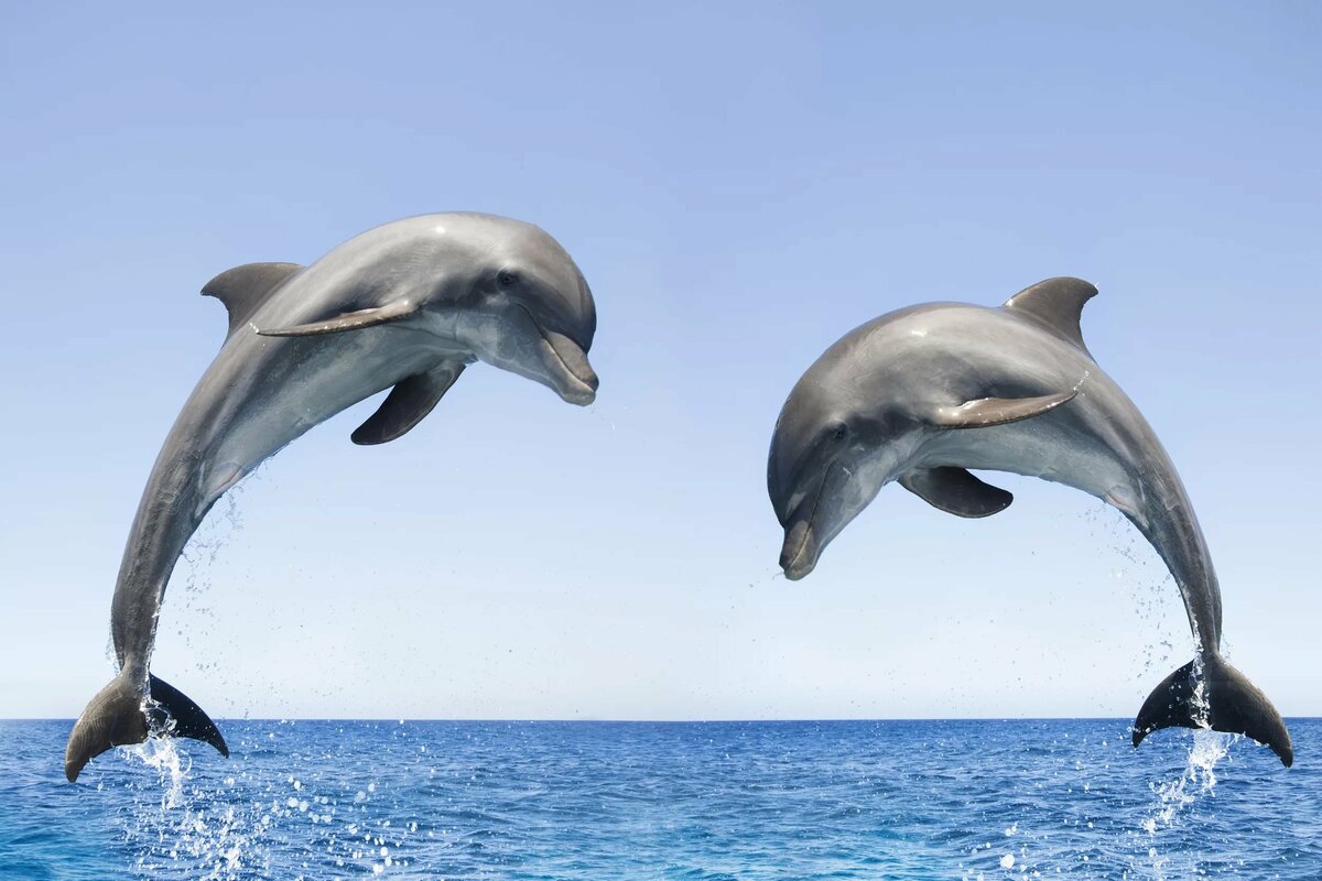 - تمتلك الدلافين فتحات أنف في أعلى رؤوسها تسمح لها بالتنفس خارج المياه.