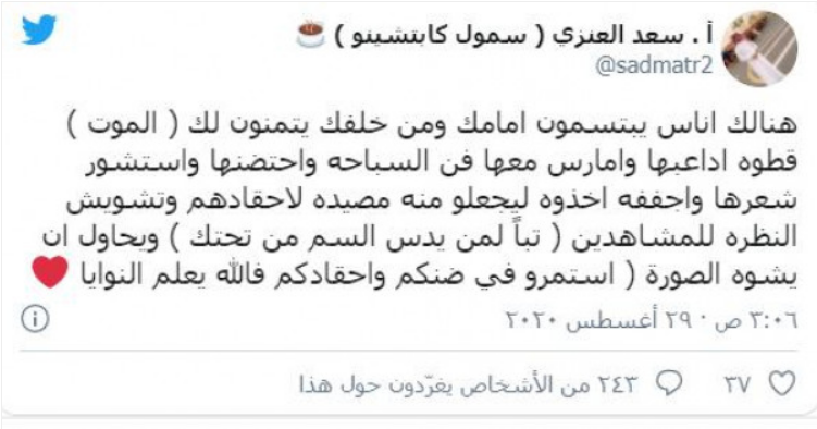 في الآونة الأخيرة قد احتل هاشتاج يحمل اسم سمول كابتشينو والذي يعد واحد من أشهر رواد منصات التواصل الاجتماعي في الوطن العربي كافة منصات مواقع التواصل الاجتماعي، إلا أن الجدير بالذكر هو أن هذا الهاشتاج ليس كبقية العناوين التي قد تتصدر حاملة لاسمه، خصوصا وأن هذا الهاشتاج كان بغرض مهاجمة وتعنيف السيد سعد العنزي، فقد كان الهاشتاج بعنوان ” سمولكابتشينويعذب_قطه ” حيث أنه قد ظهر في أحد فديوهاته يقوم بحمل قطة خائفة ويقوم برميها في حمام السباحة.