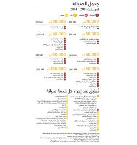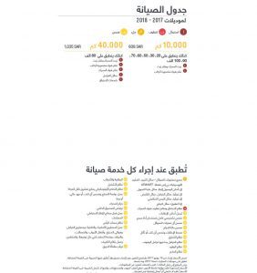 جدول الصيانة بالتوكيلات العالمية للسيارات: