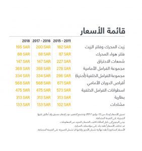كما تقدم قائمة باسعار واضحة و بسيطة مقابل عملية الصيانة لجميع انواع السيارات، و توفر قطع غيار GM و ACDelco الاصلية مما يساعد علي تقديم اعلي مستوي من الخدمة و الصيانة للسيارتك، و من مراكز صيانة التوكيلات العالمية في عدد من المدن بالسعودية و من ضمنها: