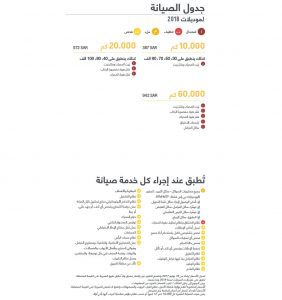 توفر خدمة الصيانة لسيارة سبارك علي موديل 2018 و هي: