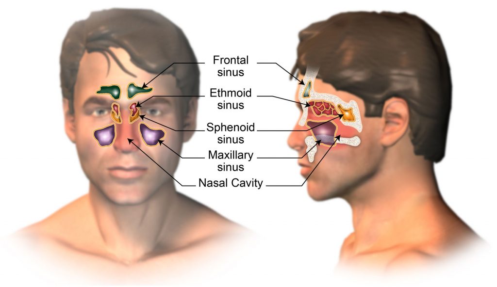 الجيوب الأنفية عبارة عن تجاويف أو جيوب تُمليء بالهواء وتكون قريبة من ممر الأنف، كما يوجد في الممر الأنفي أغشية مخاطية تُبطن أيضاً الجيوب الأنفية أغشية مخاطية، يوجد أربع أنواع من الجيوب الانفية: