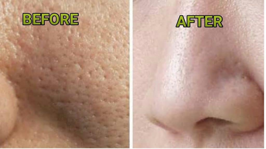 غسل البشرة بالماء البارد حيث يعمل ذلك على تصغير المسام ويتم تكرار هذه الوصفة يومياً لمدة شهر للحصول على نتيجة ممتازة .