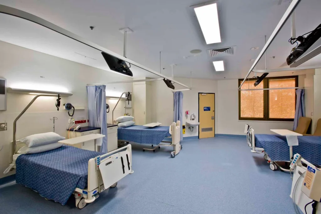 تعد المستشفيات عبارة عن مؤسسة تم تجهيزها بالكثير من المعدات البشرية وغير البشرية، وذلك من أجل تشخيص كافة الأمراض المختلفة، بالإضافة إلى العلاج الطبي والجراحي لجميع المرضى، ويتم ذلك وفق المعايير الطبية المصرح بها من وزارة الصحة، كما تتم هذه العمليات في غرف مخصصة وتشتمل على كافة المعدات والأجهزة الطبية المطلوبة.