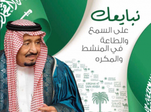 - في تلك الأيام الهنيئة الميمونة لتجديد البيعة السابعة لقيادة المملكة العربية السعودية نتوجه جميعًا بمبايعة الملك سلمان بن عبدالعزيز ونُثمن جهوده الغالية في رفع لواء علم المملكة التي ترفرف عاليًا.