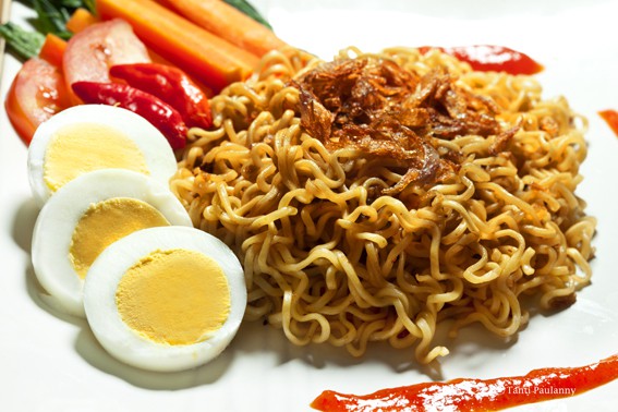 - يقدم طبق الاندومي بالبيض المقلي ساخناً إلى المائدة.