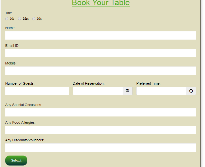 لحجز طاولة بالمطعم يُمكن التواصل هاتفيًا أو زيارة الصفحة الخاصة بذلك على الموقع الرسمي وتدوين البيانات المطلوبة والموضحة في الصورة التالية: