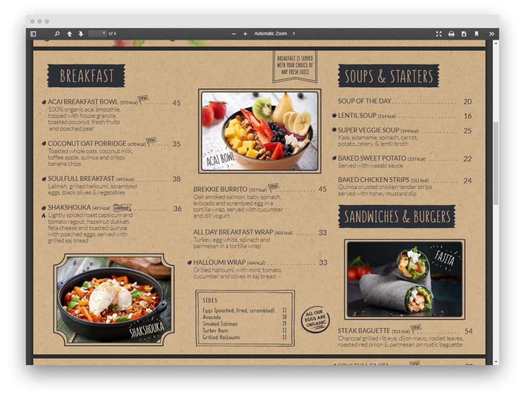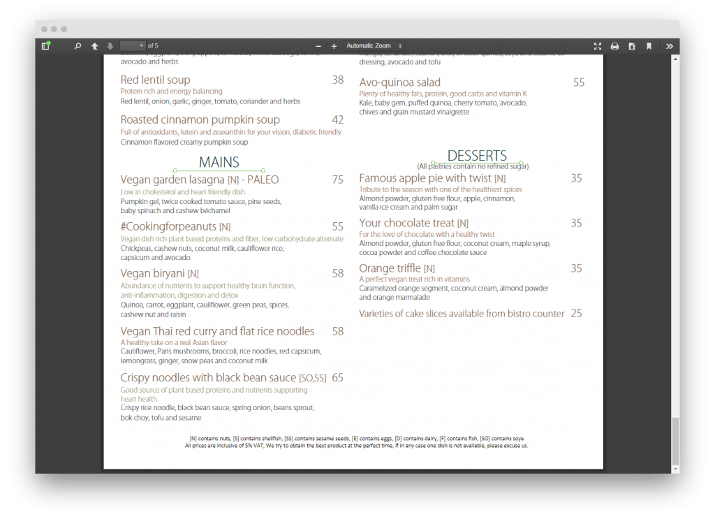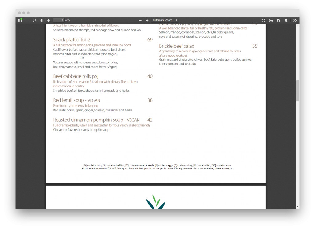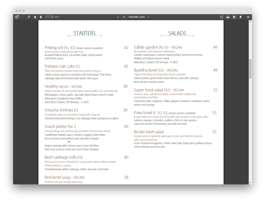 يوفر قائمة طعام صحي مميزة كما يُتيح توصيل الطعام للمنزل، ويُمكنك التأكد من ذلك بمطالعة القائمة كما هو موضح في الصور التالية: