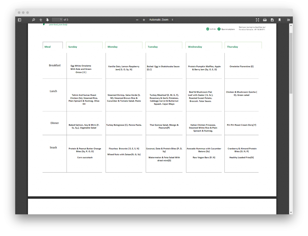 - عبارة عن نظام نباتي، يتضمن 4 وجبات على مدار اليومن والحد الأدنى للسعرات الحرارية هو 1300 سعر؛ بينما يتعلق بالسعر فالحد الأدنى هو 120 درهم إماراتي في اليوم أو 2399 درهم إماراتي في الشهر (20 يوم).