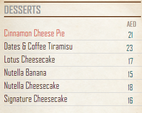 قائمة الطعام