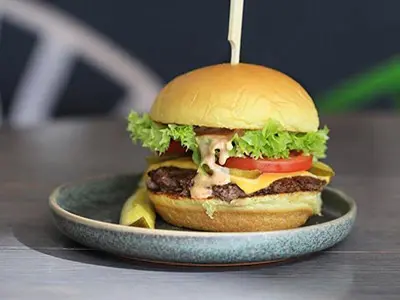 - وذلك وفق أحدث الوصفات السريعة، حيث يميز بمواصفات البرجر البقري مع الجبن الأمريكي الفاخر المتناسب معه.