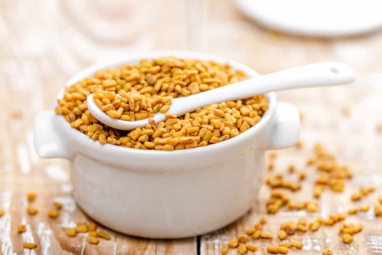 - بعد ذلك يتم إحضار كمية تعادل ملعقتان صغيرتان الحجم من الحلبة الصحيجة أو المطحونة على حسب الرغبة.