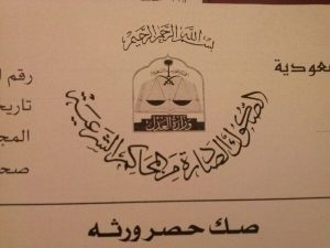 - الحصر الشرعي، وهو عبارة عن التقرير الذي يتم إصداره من قبل القاضي الشرعي بعدما يحضر شاهدان للتأكيد على حق الوراث من الإرث وهذا هو الذي يتم إعتماده ببقية الأموال الخاصة بالمتوفي.