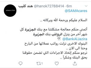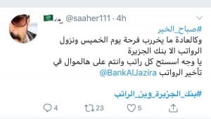 يذكر أن الهاشتاق يعود لشكاوى من المغردين بسبب تأخر بنك الجزيرة حتى هذه اللحظة في إيداع الرواتب للمستخدمين.