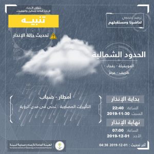 #نرصد_ونحمي pic.twitter.com/gPYSxfD0tN— المركز الوطني للأرصاد (NCM) (@NCMKSA) November 30, 2019