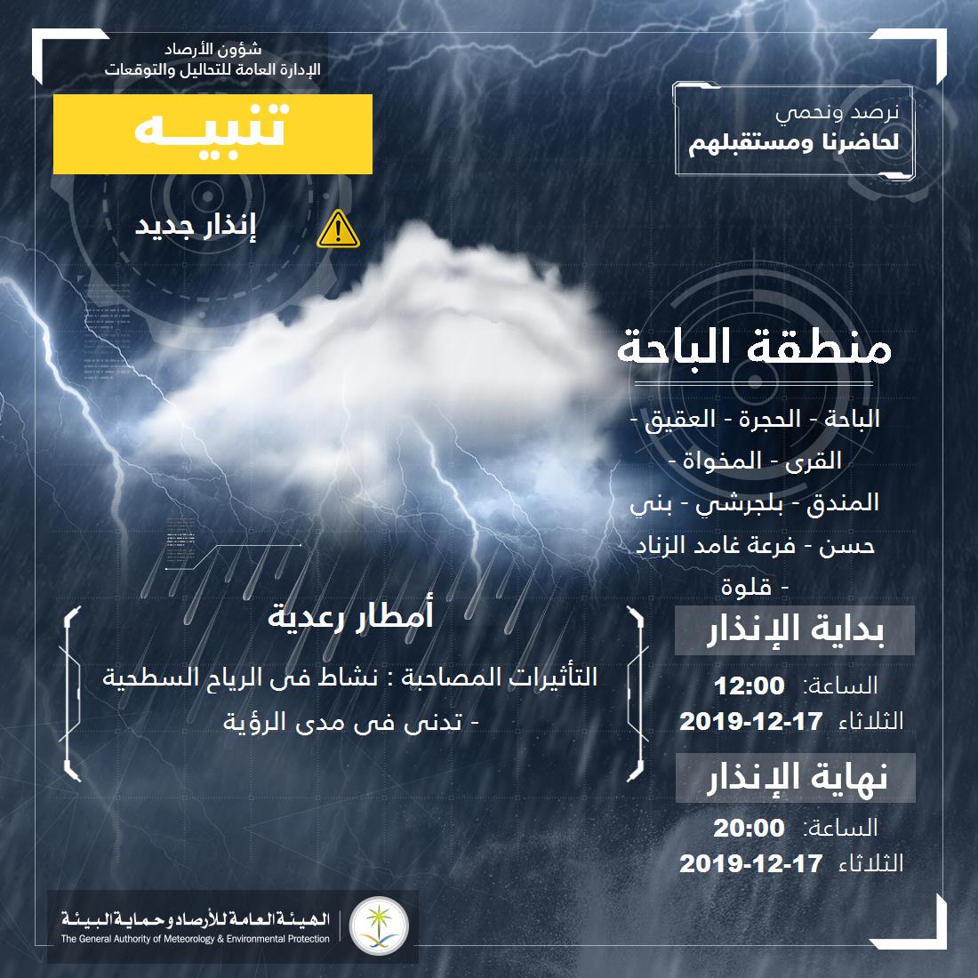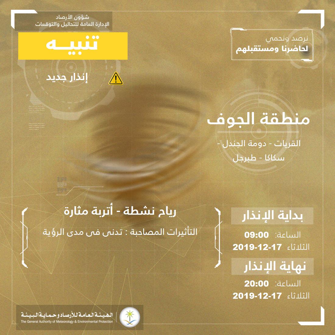 #نرصد_ونحمي pic.twitter.com/NiRewtr8TU— المركز الوطني للأرصاد (NCM) (@NCMKSA) December 17, 2019