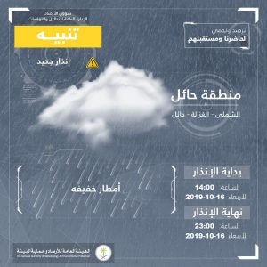 #نرصد_ونحمي #نحميها pic.twitter.com/7yAZFbqAK2— المركز الوطني للأرصاد (NCM) (@NCMKSA) October 16, 2019