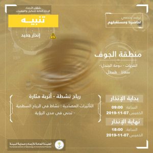 #نرصد_ونحمي #نحميها pic.twitter.com/JlI8dH9GvC— المركز الوطني للأرصاد (NCM) (@NCMKSA) November 7, 2019