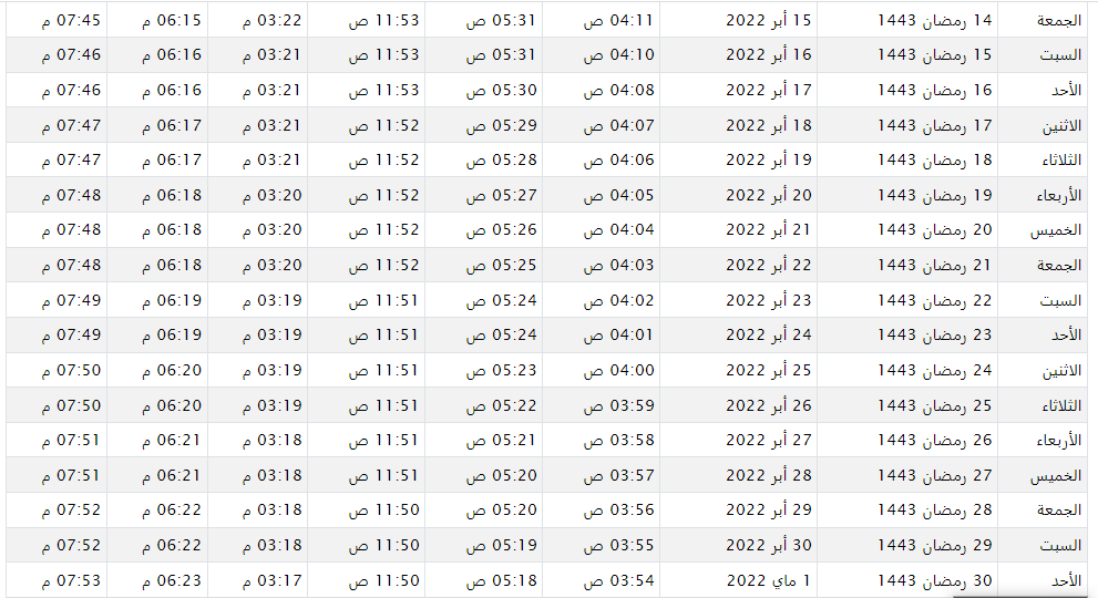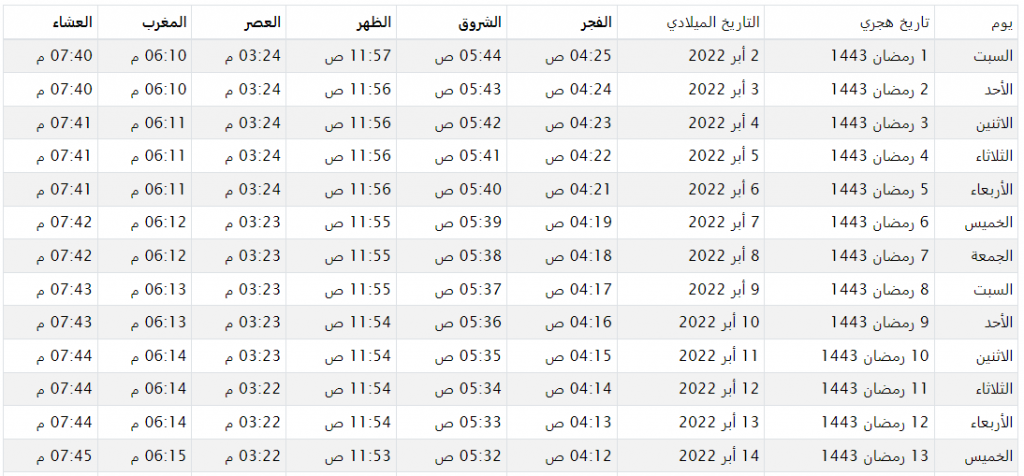 المصدر: امساكية رمضان 1445 في الرياض
