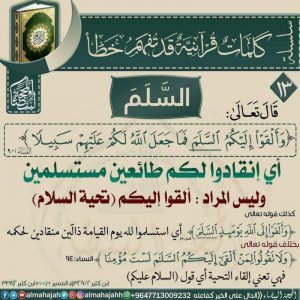 - قال الله تعالى: ((وألقوا إليكم السلم)): هذه الآية تعني أنهم جاءوا إليكم مستسلمين، وليس كما يفهمها البعض أنها يقوموا بإلقاء تحية السلام عليهم.