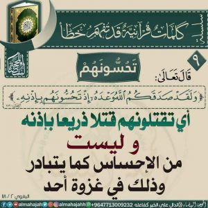 - قال الله تعالى: ((ولقد صدقكم الله وعده إذ تحسونهم)) كلمة تحسونهم هنا تعني أن تقوموا بقتلهم وذلك بإذن الله عز وجل، وليس لها علاقة بكلمة الإحساس.