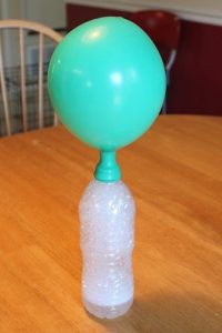 - وبعد ذلك يمكن أن نضع البالون عند فوهة الزجاجة ليتم نفخها بإستخدام الغاز الناتج.