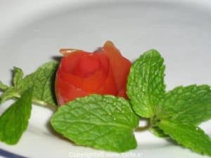 لأن الطماطم هي من أفضل أنواع الخضار وأكثرها انتشارا وشيوعا بين الكثير من الأشخاص، لذلك فإنها يمكن الاعتماد عليها في تزيين كافة أنواع الأطعمة، وذلك لأنها أيضا موجودة داخل كل منزل، ويمكن استخدام الطماطم عن طريق عمل شرائح من الطماطم وخليها ووضع تلك الحلقات بشكل متداخل على أطراف الأطباق أو في زاوية أحد الأطباق، كما يمكن عمل وردة من الطماطم عن طريق خليها من البذور تماما وبعد ذلك يتم شقها إلى نصفين بشكل طولي، ومن ثم يتم قلب قطعة الطماطم وتشقيقها بالسكين على شكل مثلثات أو مربعات، ويمكن الاستعانة ببعض ورقات البقدونس في المنتصف فذلك يجعل الأطباق أكثر شهية.