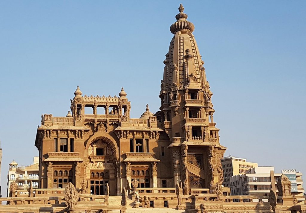 - أما عن تصميم قصر البارون فكان مستوحي من تصاميم عدة معابد ومنها معابد أوديشا الهندوسية ومعبد أنغكور وات، أما عن الديكور الخاص بالقصر كان من تصميم الرسام جورج لويس كلود.