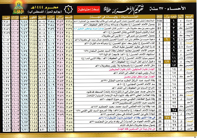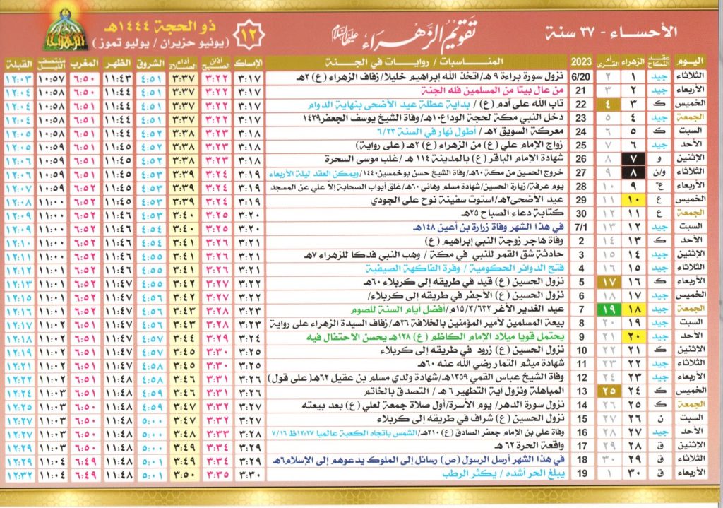 شهر محرم في تقويم الزهراء 1445