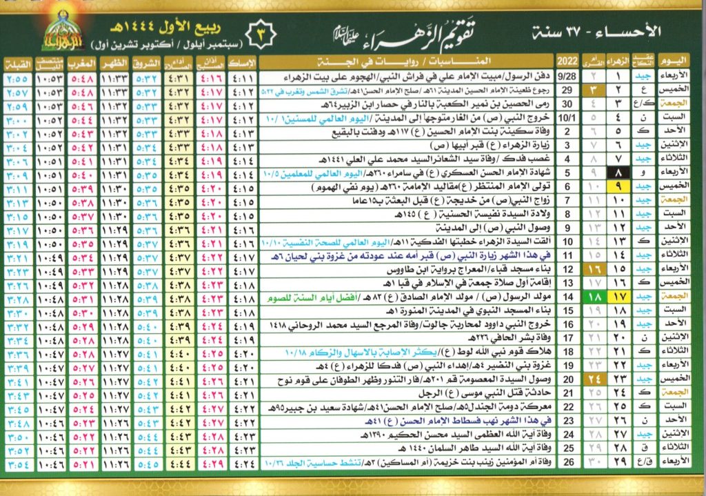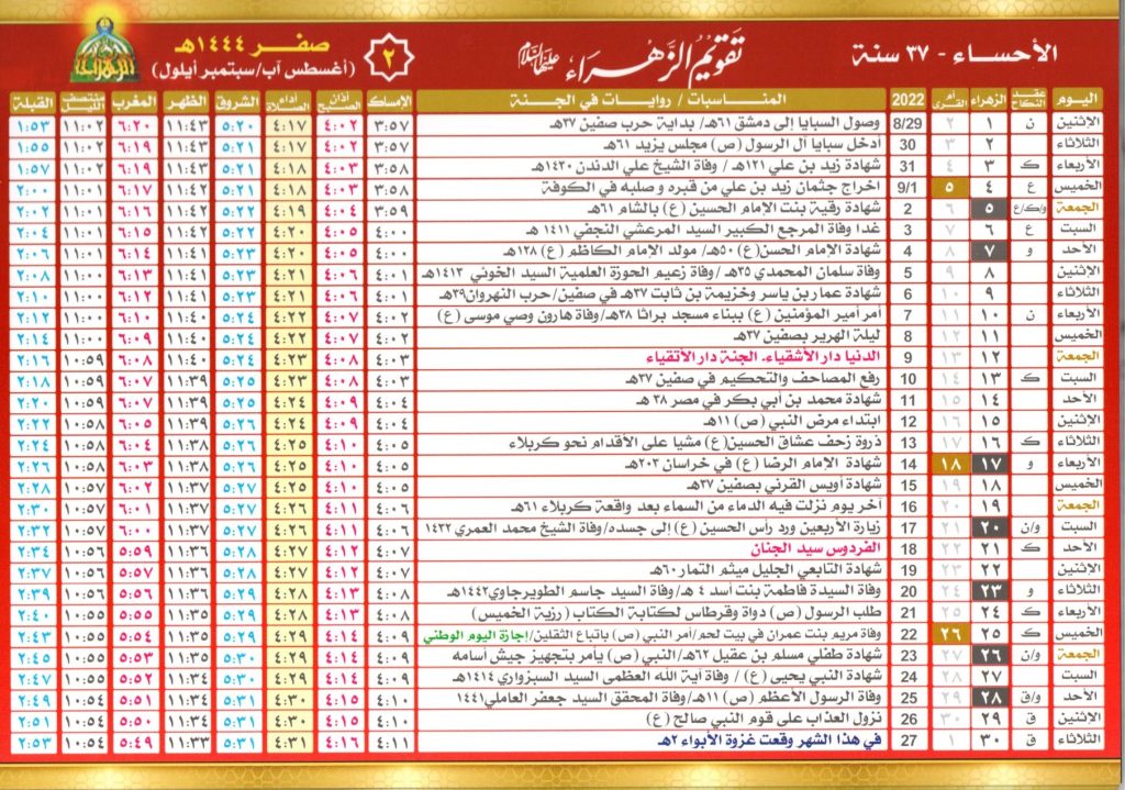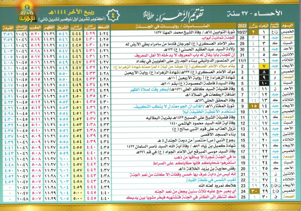 يعتاد سكان منطقة الأحساء في المملكة العربية السعودية علي اتباع تقويم الزهراء لمتابعة الأشهر الهجرية، لذلك نعرض لكم صور الشهور وتاريخ بداية من شهر محرم في التالي:
