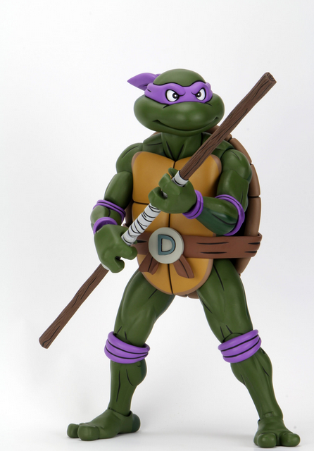 - دوناتيلو، أذكى السلاحف ويرتدي ملابس بنفسجية، ويتميز دوناتيلو بعبقريته في التكنولوجيا ومهاراته في اختراع الآلات.