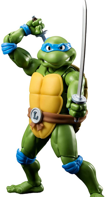 - ليوناردو، هو قائد الفريق ويرتدي ملابس زرقاء، بينما يتميز بالهدوء والحكمة والتفاني في تدريبه.