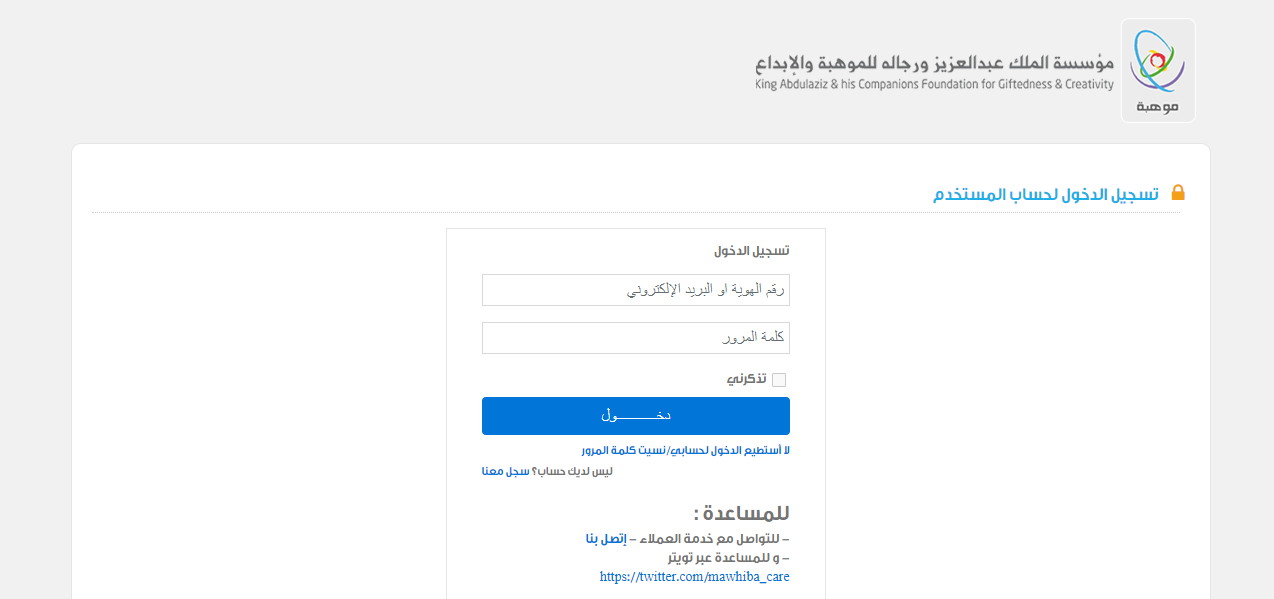 - ادخل على الصفحة الرئيسة لموهبة من خلال الضغط على هذا الرابط.