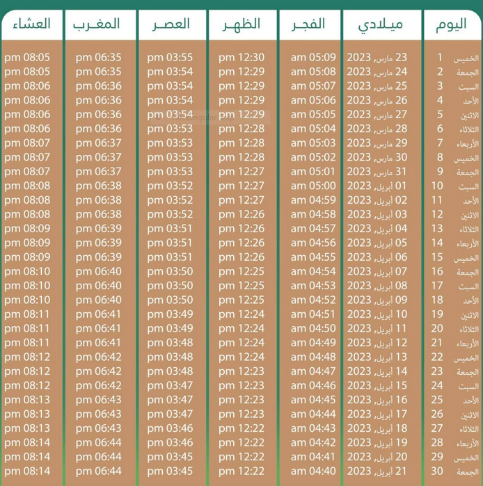 امساكية رمضان 1445