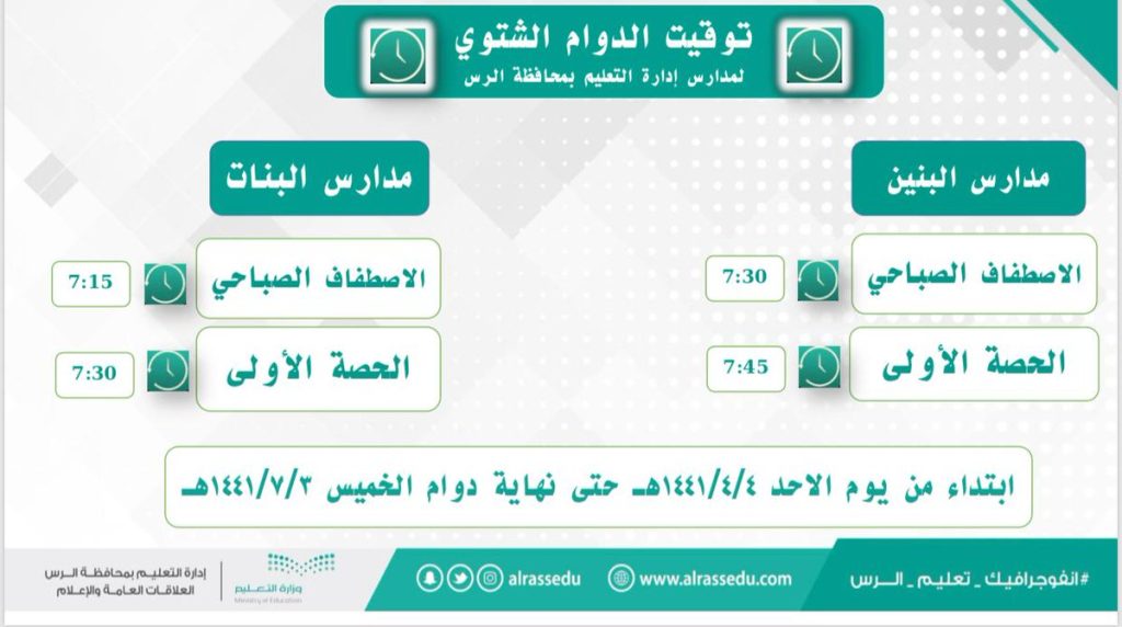 - تفاصيل الدوام الشتوي للمدارس 1443