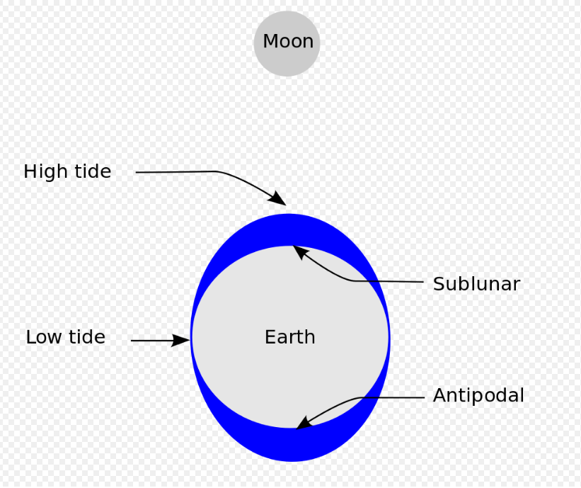 - بسبب الجاذبية، فالقمر والشمس وجاذبيتهم القوية أثناء دوران الكوكب لهم عامل كبير في إحداث ظاهرة المد والجزر، وبدوران الكوكب وبحساب قرب أو بعد القمر وقوة جاذبيته نجد ان هذه الظاهرة يمكن أن تحدث مرتين في اليوم (كلما قرب القمر من الكوكب كلما زادت جاذبيته وزاد تأثيره على البحار والمحيطات).