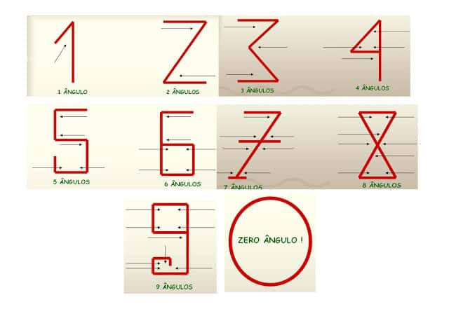 - قام كذلك بتصميم أشكال الأرقام بما يدل على قيمتها التي تعبر عنها، فمثلًا: 1 له زاوية واحدة، و 2 له زاويتان، وهكذا…