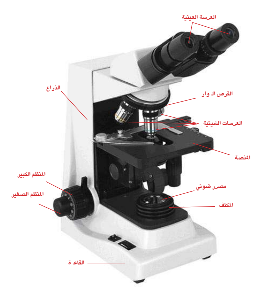 يتكون المجهر الضوئي من العديد من المكونات التي تتمثل فيما يلي: