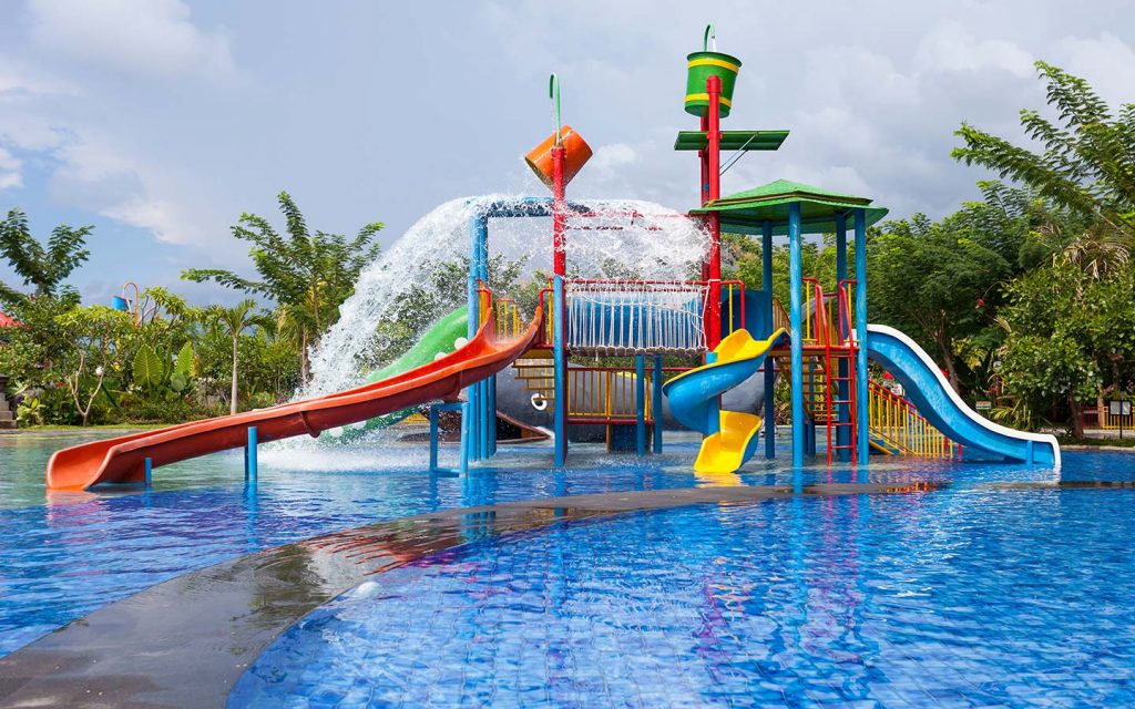- كما يمكن تجربة ألعاب البلونات المائية، والركوب على ألواح التزلج، ووسائد القفز الطافية، كما يمكن للأطفال أن يتسابقوا مع بعضهم البعض.