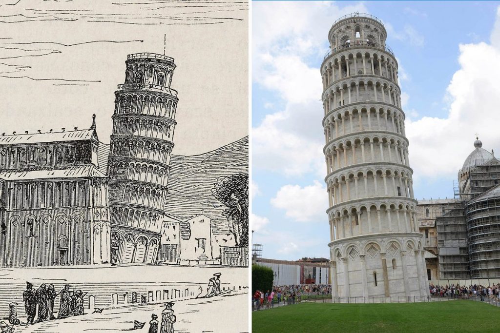 - بدء شكل برج بيزا في الانحناء في سنة 1178، حيثُ كان المعماريون ما زالوا ينهون الطابق الثاني في البرج.